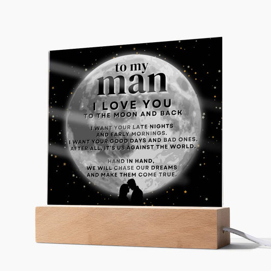 To My Man I Love You To The Moon And Back LED Desktop Acrylic Display Gift
