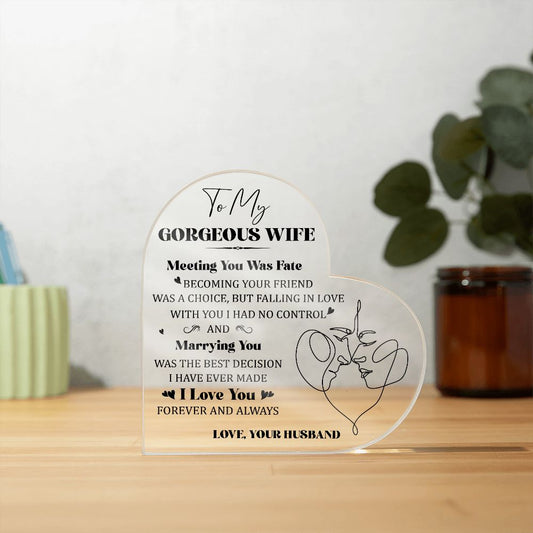 To My Gorgeous Wife Meeting You was Fate Line Drawing Meaningful Gift From Husband Acrylic Heart Desktop Display