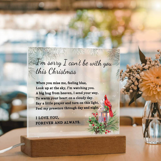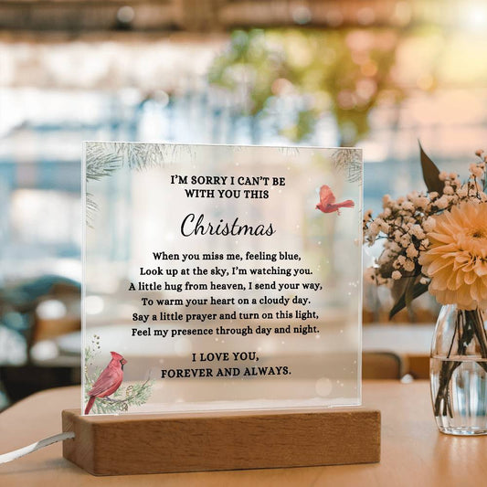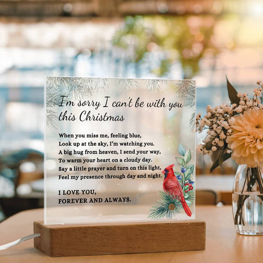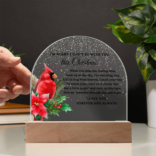 Red Cardinal I Can't Be With You This Christmas Poem Condolence LED Nightlight Acrylic Desktop Art