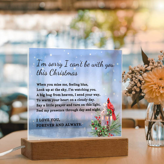 Blue Sky I Can't Be With You This Christmas Poem Condolence LED Nightlight Acrylic Desktop Art (USB Powered)