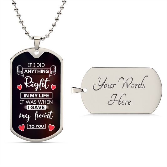 If I Did Anything Right In My Life It Was When I Gave My Heart To You Dog Tag Necklace Gift For Husband