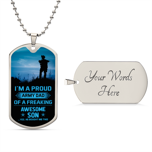 I'm a Proud Army Dad Of A Freaking Awesome Son, Dog Tag Necklace Gift For Father's Day