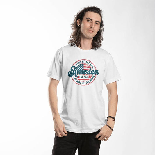 Land of the Free, Because of the Brave Retro Unisex 4th of July T Shirt