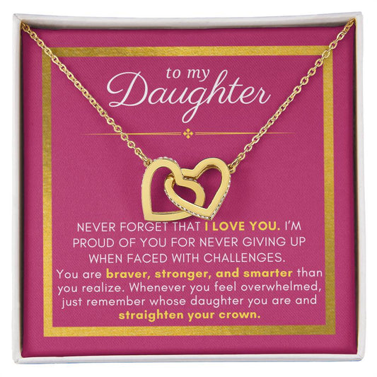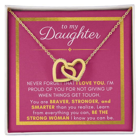 Gift For Daughter, Braver Stronger Smarter, Interlock Heart Pendant Necklace