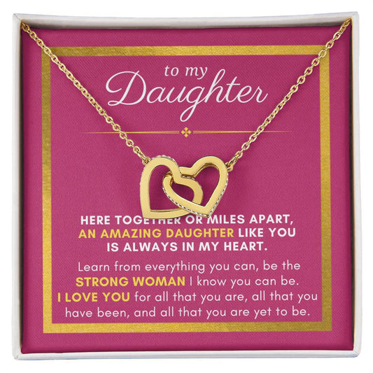 Gift For Daughter, Together or Miles Apart, Interlock Heart Pendant Necklace