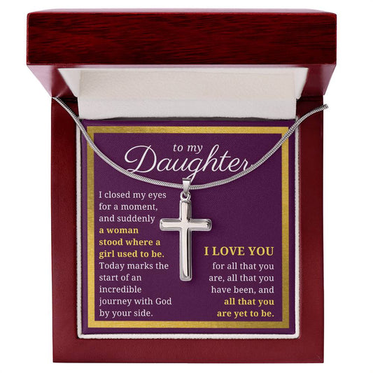 Gift For Daughter, Confirmation or Baptism Journey With God Stainless Steel Cross Necklace