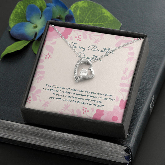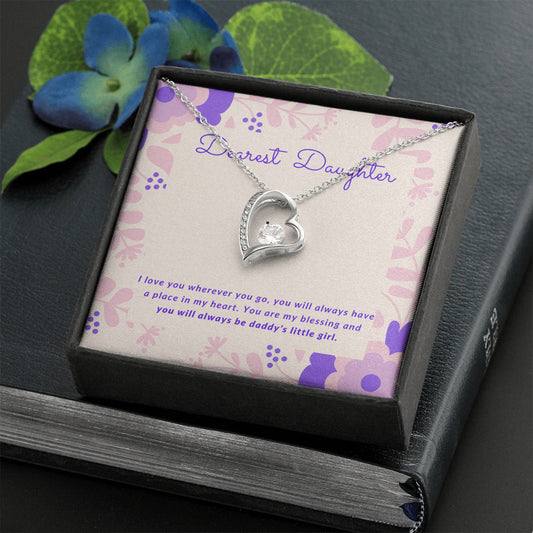 I Love You Wherever You Go, From Dad to Daughter Gift, Forever Love CZ Heart Pendant Necklace