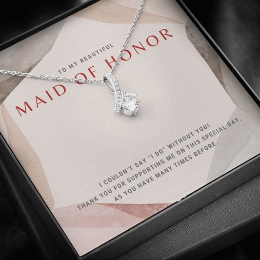 Modern Confetti Thank You Maid Of Honor Love Knot Necklace