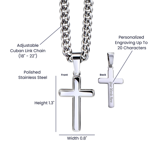 Graduation Gift for Son or Grandson, I'm Proud of You, Engravable Cross Necklace on Cuban Chain B0F4NQB8G6