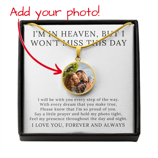 I'm in Heaven on your Wedding Day Memorial Condolence Gift, Circle Photo Necklace