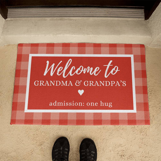 SaleRed Plaid Grandma and Grandpa Indoor Outdoor Welcome Door Mat