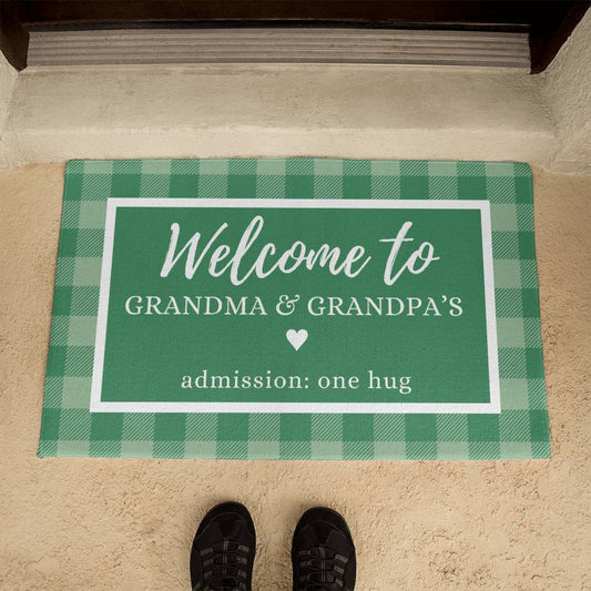 SaleGreen Plaid Grandma and Grandpa Indoor Outdoor Welcome Door Mat