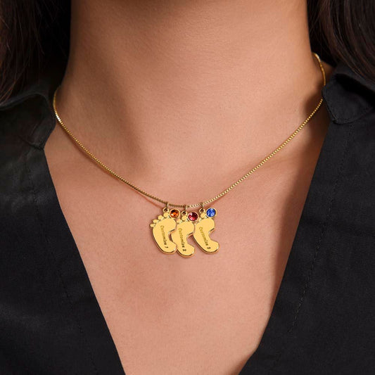 First Mother's Day Gift From the Bump Baby Feet Necklace with Birthstone