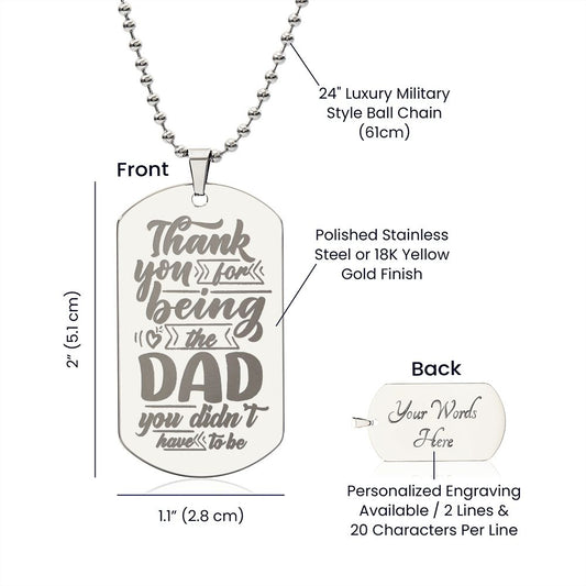 Thank You for Being the Dad You Didn't Have To Be, To Dad Gift Engraved Dog Tag Necklace For Father's Day