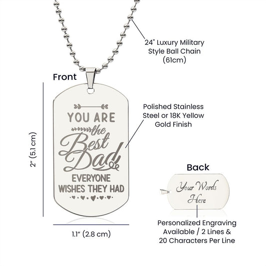 You are the Best Dad Everyone Wishes They Had, To Dad Gift Engraved Dog Tag Necklace For Father's Day
