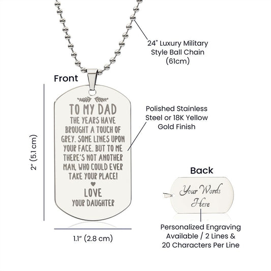 There's Not Another Man Who Could Ever Take Your Place, To Dad Gift Engraved Dog Tag Necklace For Father's Day