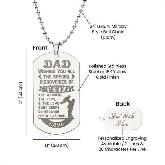 Wishing You all the Special Discoveries of Fatherhood, To Dad Gift Engraved Dog Tag Necklace For Father's Day