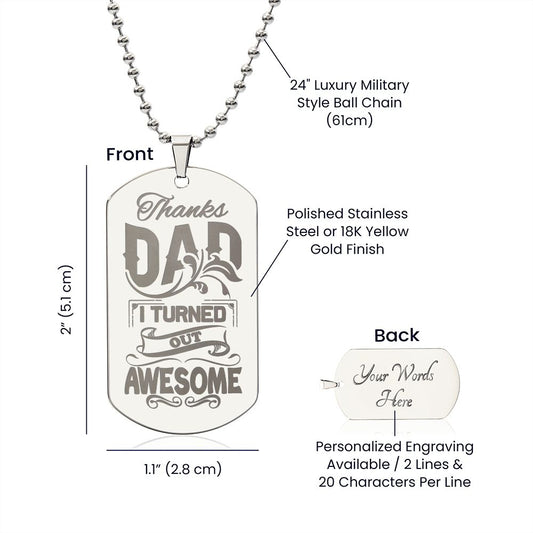 Thanks Dad I Turned Out Awesome, To Dad Gift Engraved Dog Tag Necklace For Father's Day