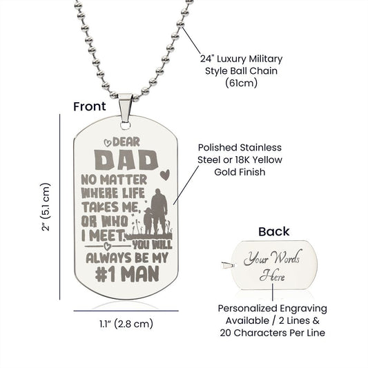 You Will Always be my #1 Man, To Dad Gift Engraved Dog Tag Necklace For Father's Day