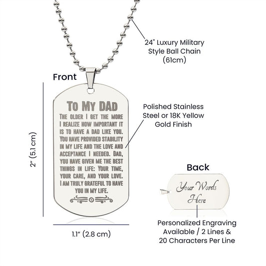 I Am Truly Grateful to Have You in My Life, To Dad Gift Engraved Dog Tag Necklace For Father's Day