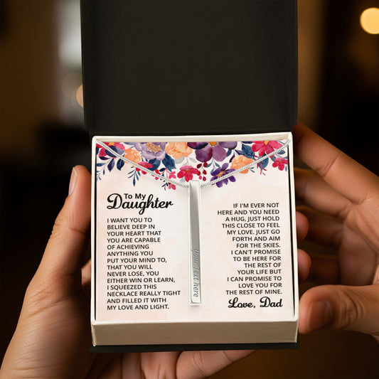 To My Daughter Gift From Dad, I Want You to Believe, 4 Sided Custom Engraved Bar Necklace