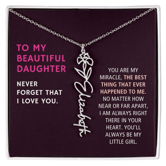 To Daughter Gift, You Are My Miracle, Custom Birth Flower Name Necklace