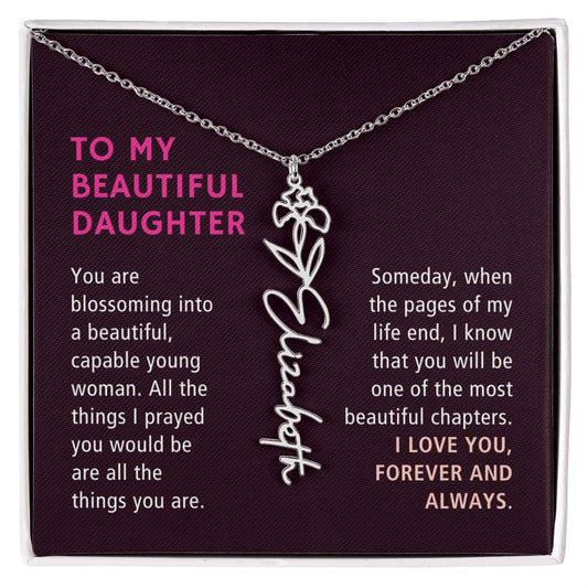 To Daughter Gift, Blossoming Into A Beautiful Young Woman, Custom Birth Flower Name Necklace