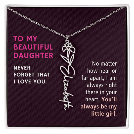 To Daughter Gift, No Matter How Near or Far Apart, Custom Birth Flower Name Necklace