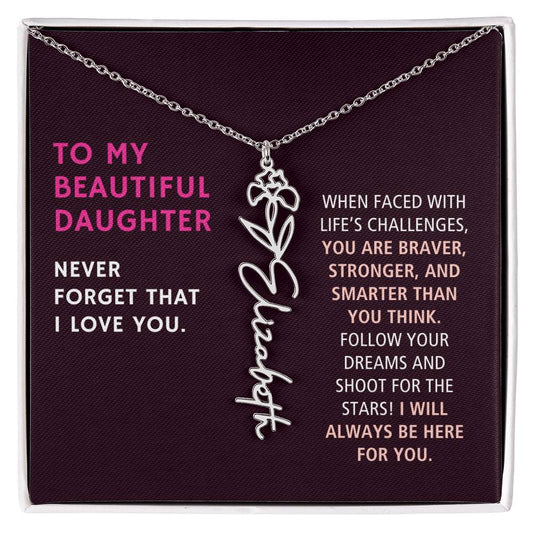To Daughter Gift, You are Braver Stronger and Smarter, Custom Birth Flower Name Necklace