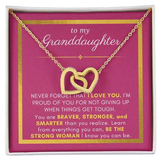 Gift For Granddaughter, Braver Stronger Smarter, Interlock Heart Pendant Necklace