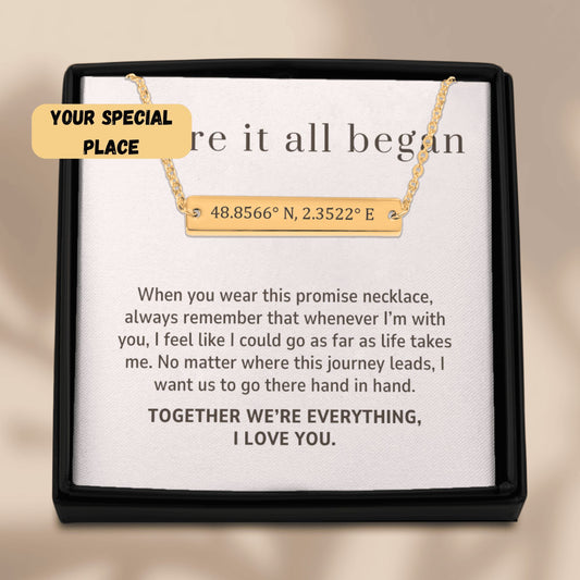 To My Girlfriend Gift, Promise Necklace Coordinates Numbers Horizontal Bar Necklace