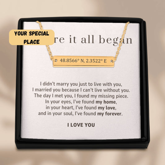To My Soulmate Gift, Meeting You was Fate Coordinates Numbers Horizontal Bar Necklace