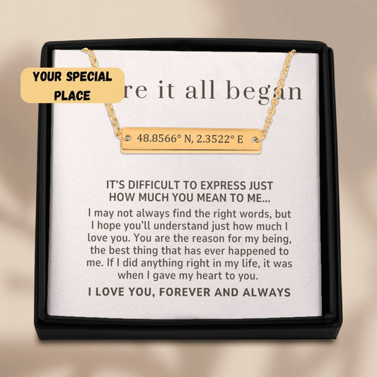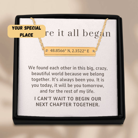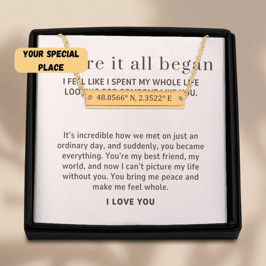 To My Soulmate Gift, The Day We Met Coordinates Numbers Horizontal Bar Necklace