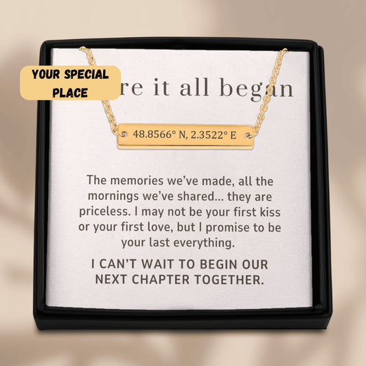To My Future Wife Gift, Your Last Everything, Coordinates Numbers Horizontal Bar Necklace