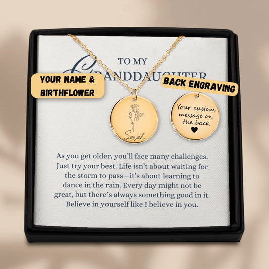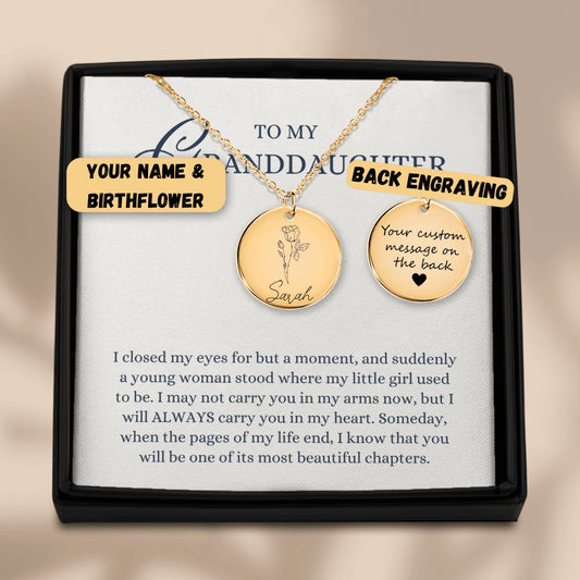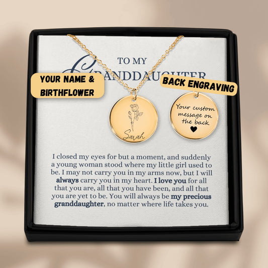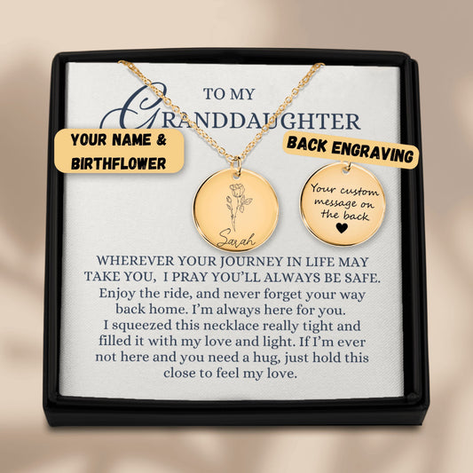 To my Granddaughter, Journey in Life, Laser Engraved Personalized Birth Flower Pendant Name Necklace