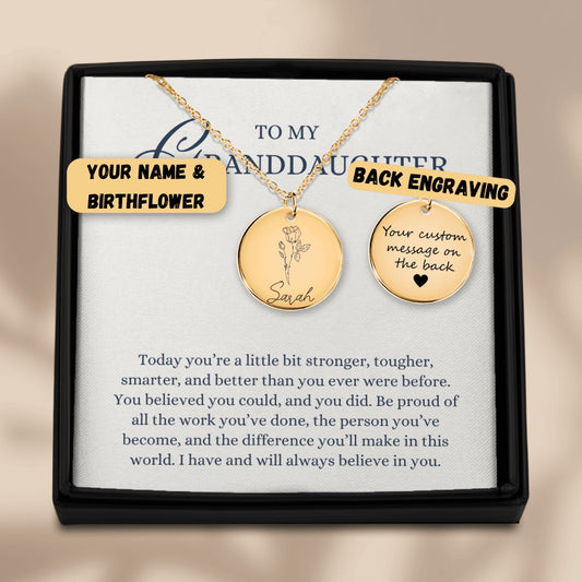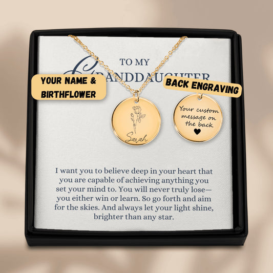 To my Granddaughter Gift, Believe in Yourself, Laser Engraved Personalized Birth Flower Pendant Name Necklace