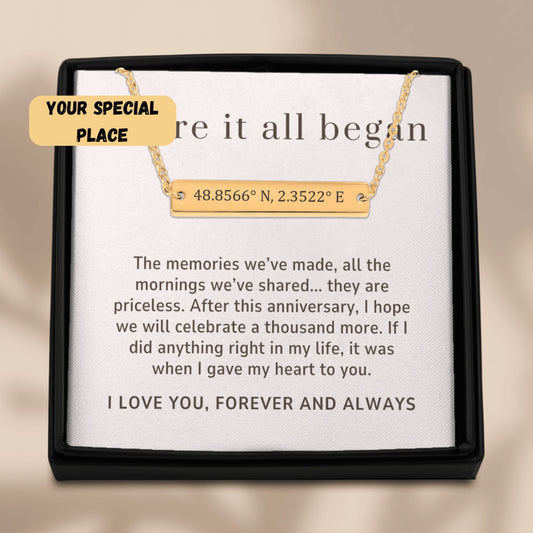 To My Wife Gift, Memories We Made Coordinates Numbers Horizontal Bar Necklace For Anniversary