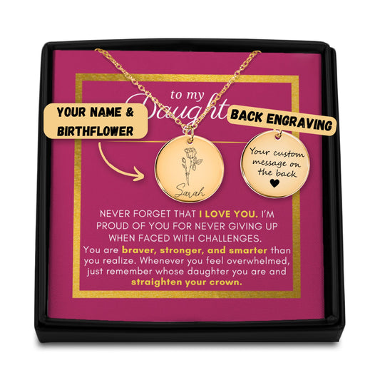 Gift For Daughter, Braver Stronger Smarter, Name & Birth Flower Necklace