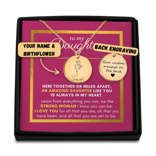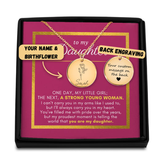SaleGift For Daughter, Proud of You, Name & Birth Flower Necklace