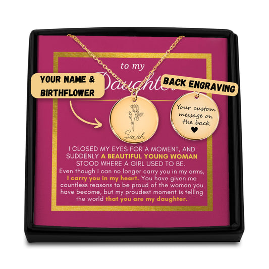 Gift For Daughter, I Closed My Eyes for a Moment Engraved Name & Birth Flower Necklace