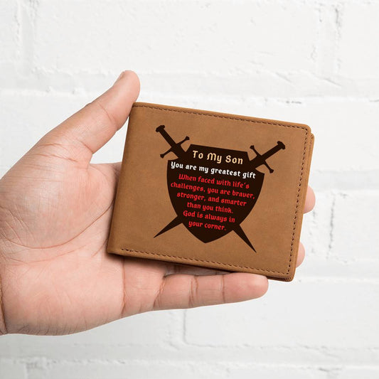 To Son Gift, Warrior Shield, Life's Challenges Inspirational Graphic Leather Wallet