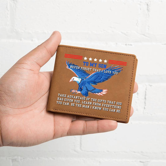 SaleAmerican Eagle To Son Gift, Inspirational Graphic Leather Wallet
