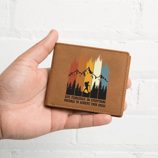 To Son Gift or Grandson Gift, Inspirational Graphic Leather Wallet, Mountain Hiker Live Fearlessly