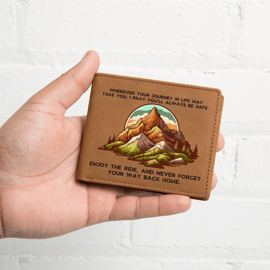 To Son Gift or Grandson Gift, Inspirational Graphic Leather Wallet, Mountain Wherever Your Journey In Life