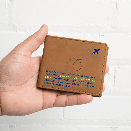 To Son Gift or Grandson Gift, Inspirational Graphic Leather Wallet, Airplane Wherever Your Journey In Life
