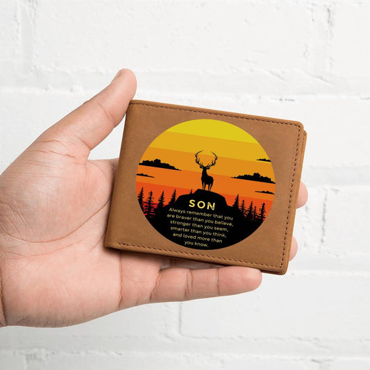 To Son Gift, Inspirational Graphic Leather Wallet, Mountain Deer You Are Braver Than You Think