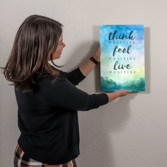 Think Feel Live Positive Motivation Room Decor Vertical High Gloss Metal Art Print