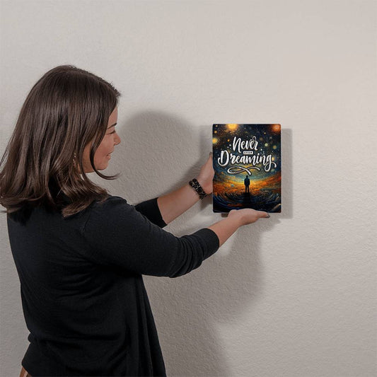 Never Stop Dreaming Aesthetic Positive Motivation Room Decor Vertical High Gloss Metal Art Print