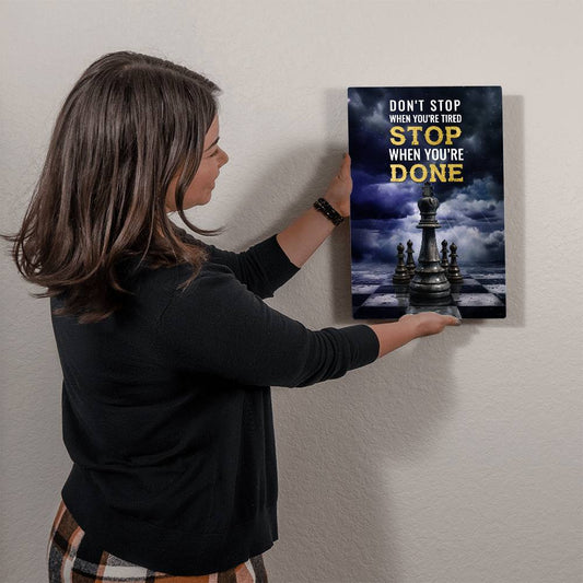 Chess Art Don't Stop When You're Tired, Positive Motivation Room Decor Vertical High Gloss Metal Art Print