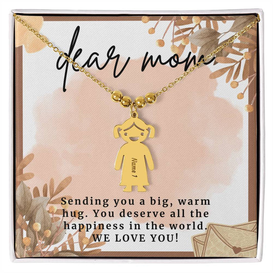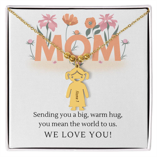 Gift For Mom, Sending You A Big Warm Hug, Custom Engraved Kid Charm Necklace